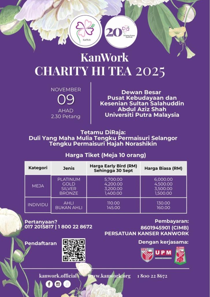 Persatuan Kanser KanWork akan mengadakan majlis minum petang;
