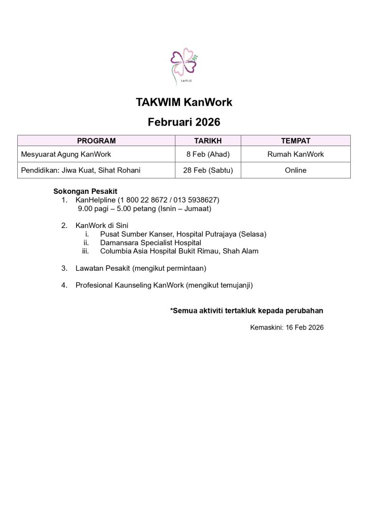 Makluman pendaftaran program akan dihebahkan & semua aktiviti tertakluk kepada perubahan dari semasa ke semasa.